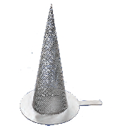 Standard perforated 304 stainless steel screens are spot welded along the seam for maximum strength. Different size perforations and meshes are available in a variety of materials to meet specific requirements. Special designs are also available including Magnetic, Wedge Wire, Drilled perforations and Pleated straining elements.